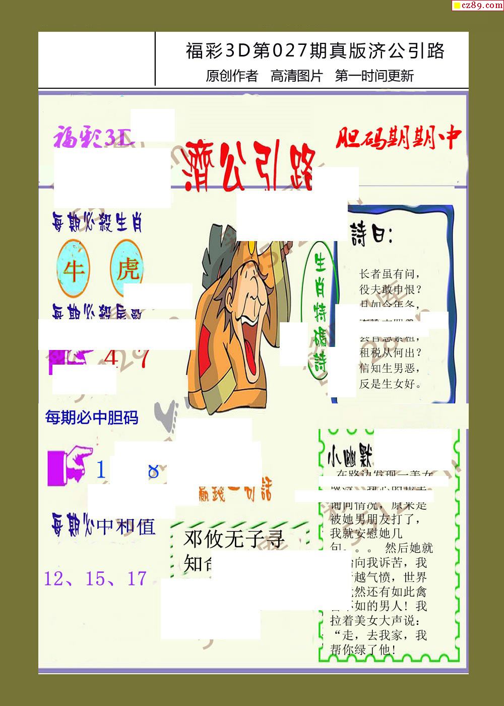 济公引路26年027期福彩3d画报