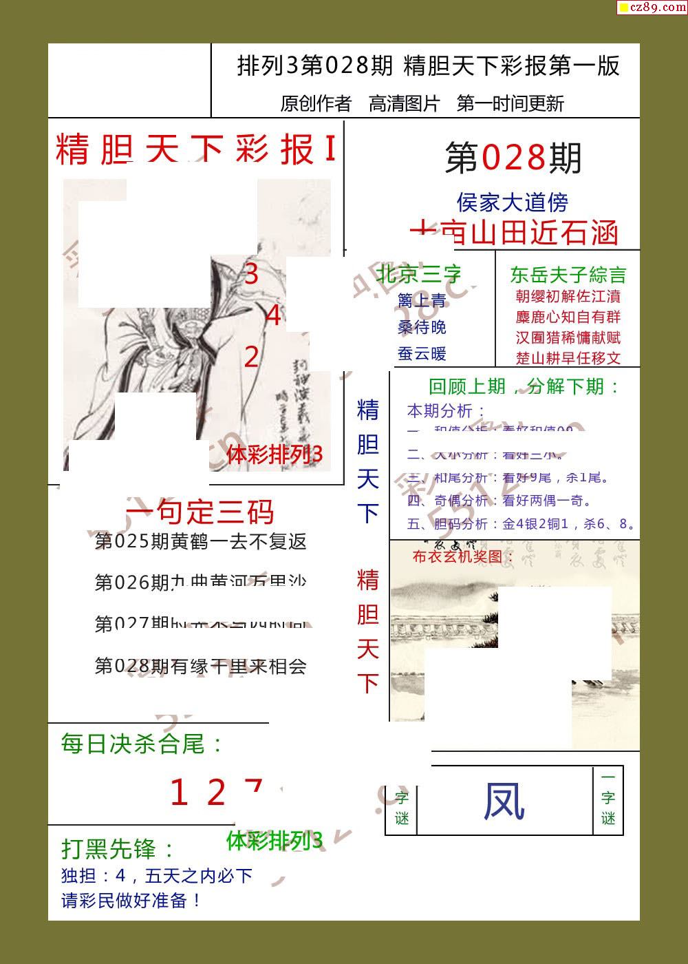 2026年028期牛彩网体彩P3画迷图谜汇总分享