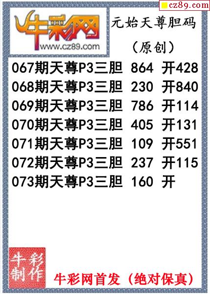 元始天尊胆码图073期体彩P3图谜(原创)
