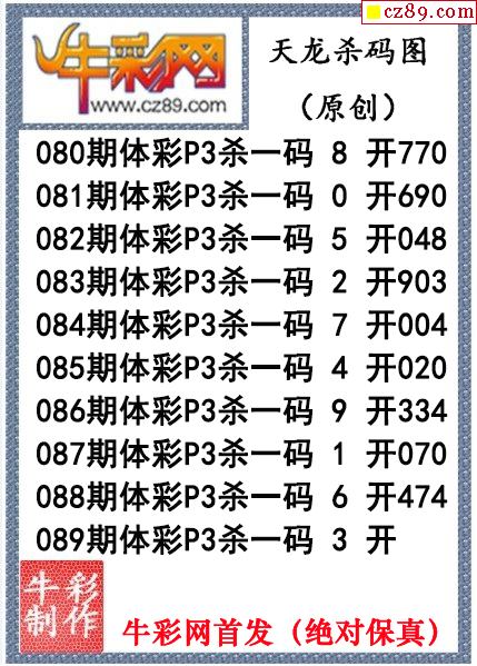 > 天龙杀码089期体彩P3图谜(原创)